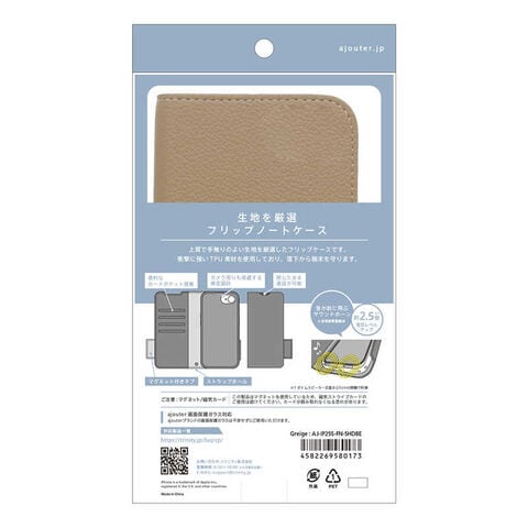 トリニティ iPhone 16e ajouter アジュテ [FlipNote] 耐衝撃フリップノートケース グレージュ AJ-IP25S-FN-SHDBE