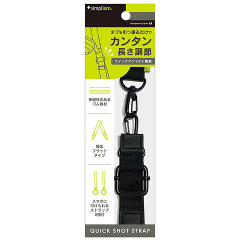 ・身につけたまま長さ調整ができるクイックアジャスト機能・ポケットやカバンから出す手間がなくなり、落下防止にも最適・両手が自由になって動きやすくなるので、様々なシーンに役立つ・スマートフォンケースに取り付けられる松葉ストラップ同梱・伸び縮み素材で、装着簡単・カラビナ構造で取り外し簡単