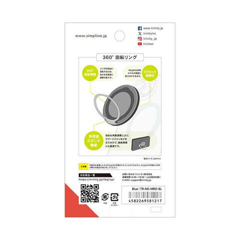 トリニティ [MagRound] MagSafe対応 360度回転リングスタンド ブルー TR-MS-MRD-BL