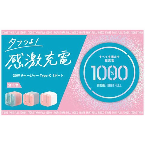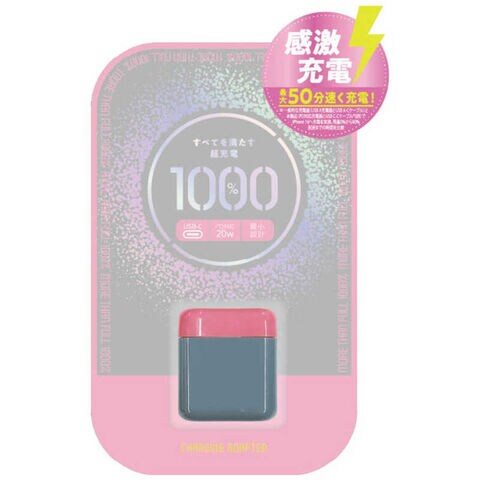 トリニティ [1000%] 20Wチャージャー Type-C 1ポート ピンク / グレー OO-CHC120-PKGY
