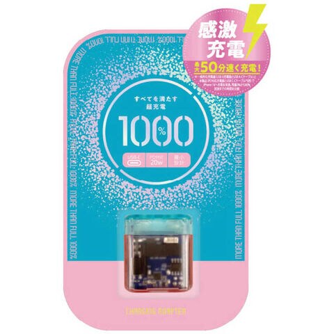 トリニティ [1000%] 20Wチャージャー Type-C 1ポート スケルトンカラー スケルトンブルー / スケルトンピンク OO-CHC120-SCBLPK