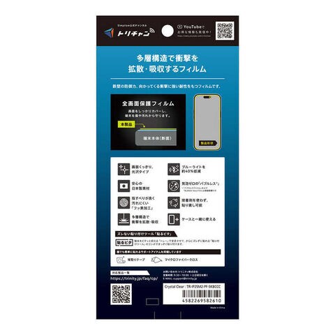 トリニティ iPhone 17 / 16Pro 衝撃吸収&ブルーライト低減 画面保護フィルム 光沢 TR-IP25M2-PF-SKBCCC