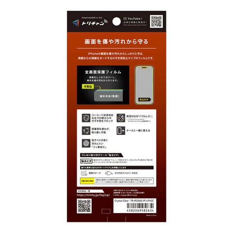 トリニティ iPhone17 / 16 Pro のぞき見防止 画面保護フィルム 光沢 TR-IP25M2-PF-LPVCC
