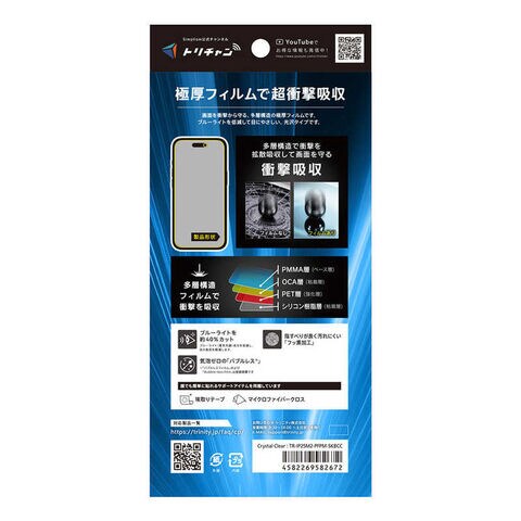 トリニティ iPhone 17 / 16Pro 超衝撃吸収&ブルーライト低減 画面保護フィルム 光沢 TR-IP25M2-PFPM-SKBCC