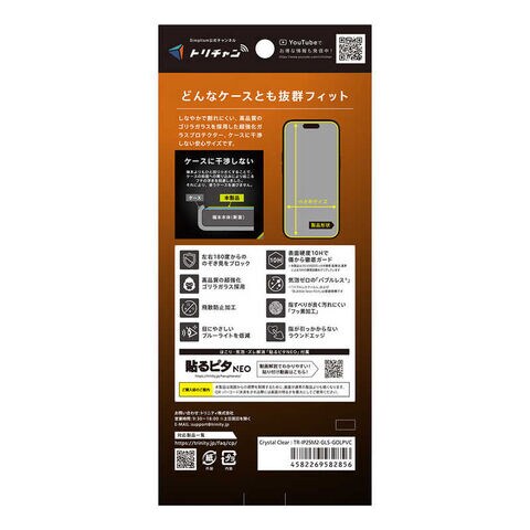 トリニティ iPhone17 / 16 Pro ケースとの相性抜群 ゴリラガラス のぞき見防止 画面保護強化ガラス 光沢 TR-IP25M2-GLS-GOLPVC
