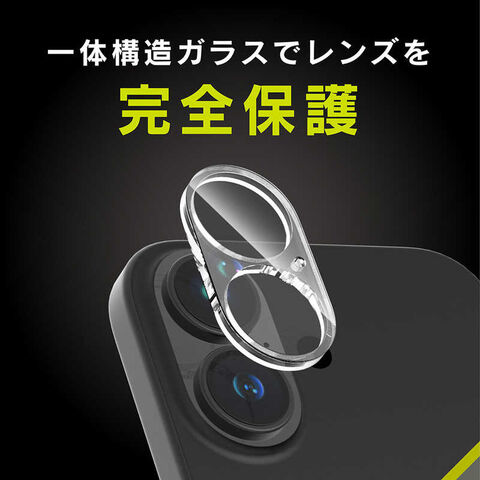 レンズもカメラユニットも一緒に守れる、一体型構造のレンズ保護ガラスです。