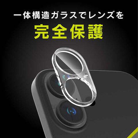 レンズもカメラユニットも一緒に守れる、一体型構造のレンズ保護ガラスです。