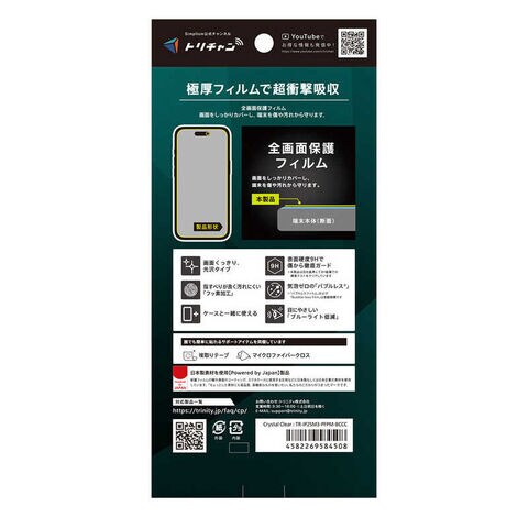 トリニティ iPhone17 Pro / 16 Pro 9Hガラスライク ブルーライト低減 画面保護フィルム 光沢 TR-IP25M3-PFPM-BCCC