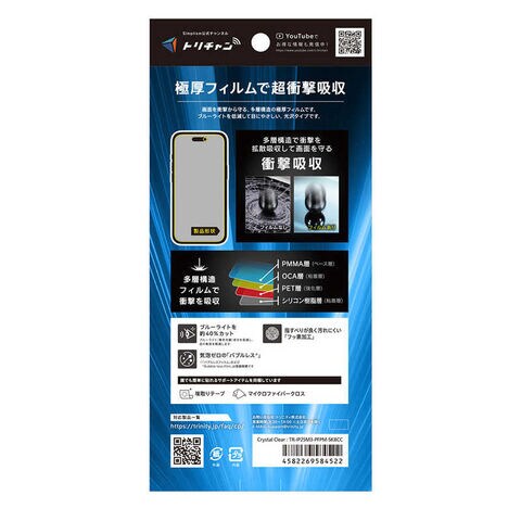 トリニティ iPhone17 Pro / 16 Pro 超衝撃吸収&ブルーライト低減 画面保護フィルム 光沢 TR-IP25M3-PFPM-SKBCC