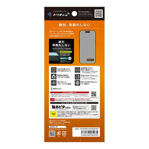 トリニティ iPhone17 Pro [FLEX 3D] ゴリラガラス のぞき見防止 複合フレームガラス TR-IP25M3-G3-GOLPVCK