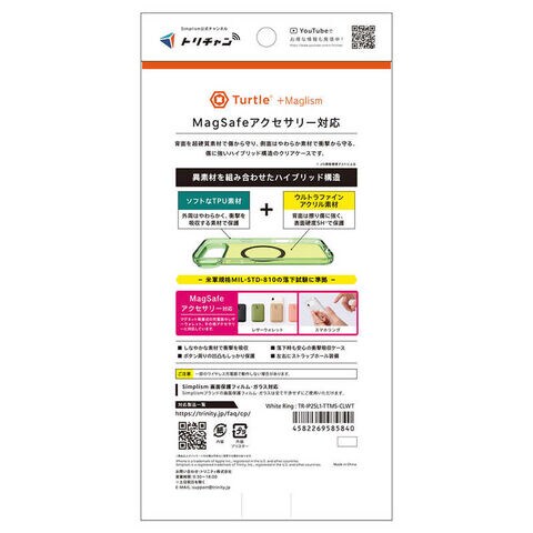 トリニティ iPhone Air [Turtle] MagSafe対応 ハイブリッドクリアケース リング TR-IP25L1-TTMS-CLWT