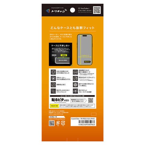 トリニティ iPhone17 Pro Max ケースとの相性抜群 のぞき見防止 画面保護強化ガラス 光沢 TR-IP25L3-GLS-LPVCC