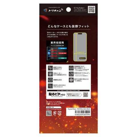 トリニティ iPhone17 Pro Maxフィルム ケースとの相性抜群 目にやさしい 赤色光変換 画面保護強化ガラス 光沢 TR-IP25L3-GLS-RLCC