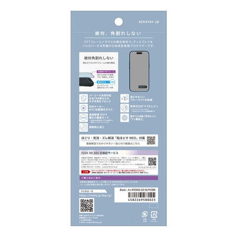 トリニティ iPhone 17フィルム ajouter アジュテ 16 Pro [FLEX 3D] のぞき見防止 複合フレームガラス ブラック AJ-IP25M2-G3-SLPVCBK