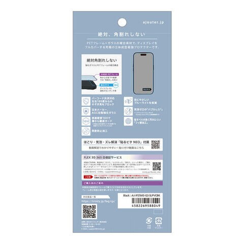 トリニティ iPhone 17 Proフィルム ajouter アジュテ [FLEX 3D] のぞき見防止 複合フレームガラス ブラック AJ-IP25M3-G3-SLPVCBK