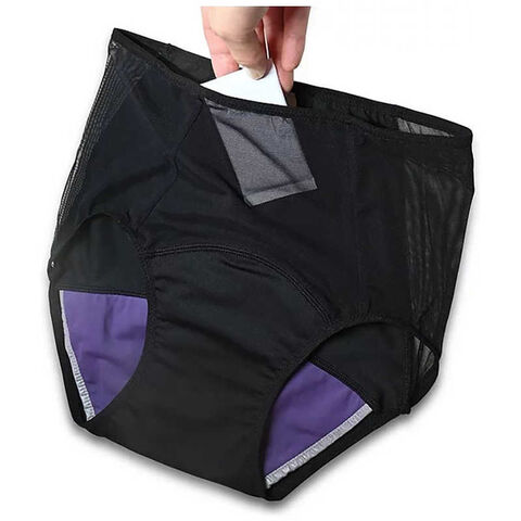 ●ハイウエストはクロッチ部分の抗菌布にブラックではなくパープルを使用。そうすることで、水分の量を目で確認することができ、また洗濯時に汚れがきちんと落ちているかもわかりやすくなっています。