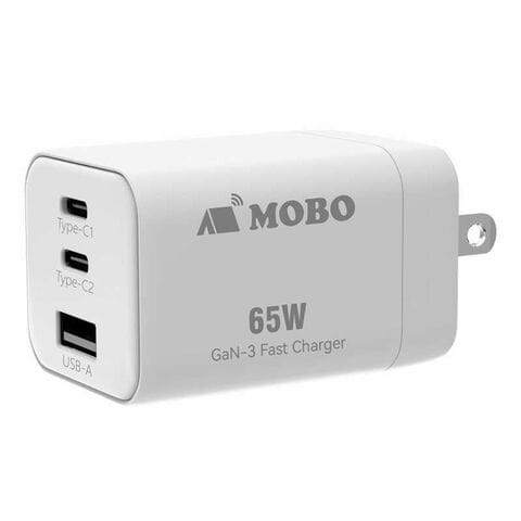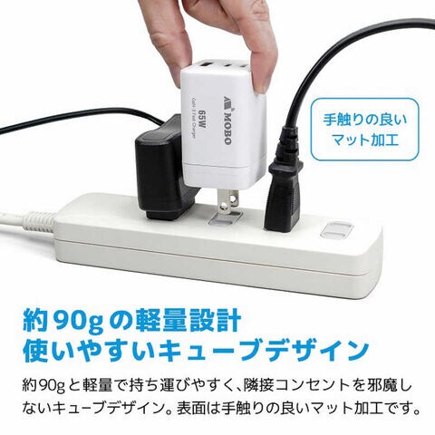 MOBO 折りたたみ式プラグ搭載 コンパクトAC充電器 65W [3ポート / USB Power Delivery対応 / GaN(窒化ガリウム) 採用] ホワイト AM-PDMGAN65W-WH