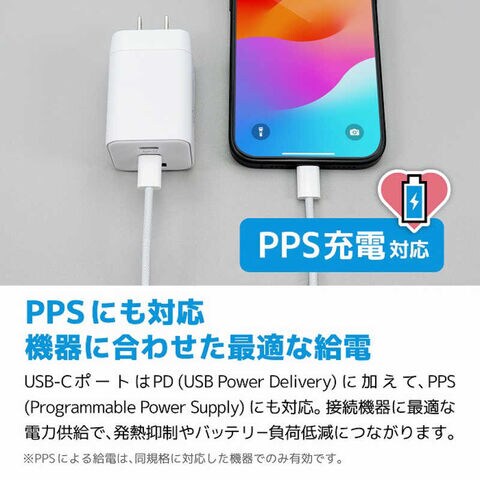 USB-Cポートは、USB Power Delivery (PD) に加え、オプション規格であるPPS (Programmable Power Supply) にも対応しています。