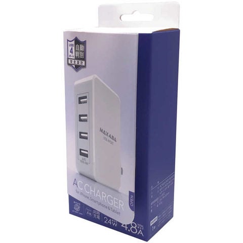 オズマ 自動判別機能付き AC - USB充電器4.8A IHACU448ADW(ホワイ