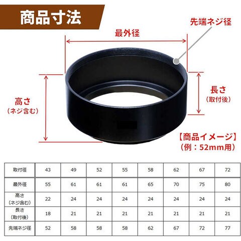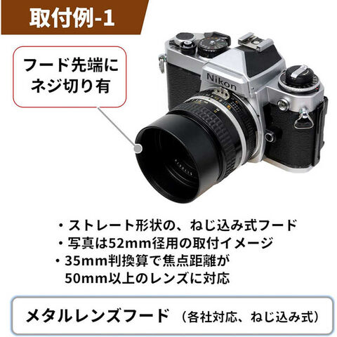 50mm標準レンズ(35mm判の場合)に対応するレンズフードです。