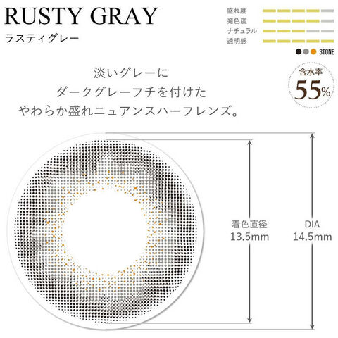 高含水レンズ(55%):【1DAY】SMOKEY BEIGE、SMOKEY GRAY、RUSTY BEIGE、RUSTY GRAY