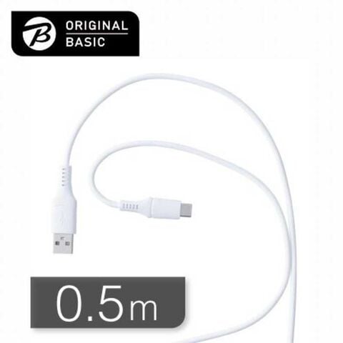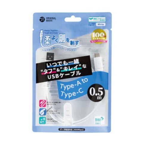 ORIGINALBASIC USB-Ato Type-Cケーブル 0.5m シリコーン素材 やわらかい 抗菌仕様 SIAA認証 ホワイト OB-UCS2AC050-W