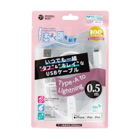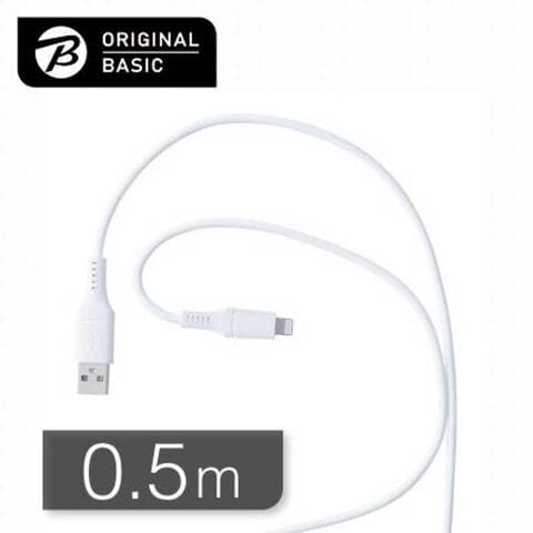 ORIGINALBASIC iPhone充電ケーブル Type-A to ライトニングケーブル 0.5m MFI認証 シリコーン素材 やわらかい 抗菌仕様 SIAA認証 ホワイト OB-UCS2AL050-W