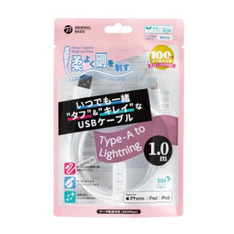 ORIGINALBASIC iPhone充電ケーブル Type-A to ライトニングケーブル 1m MFI認証 シリコーン素材 やわらかい 抗菌仕様 SIAA認証 ホワイト OB-UCS2AL100-W