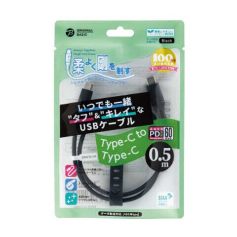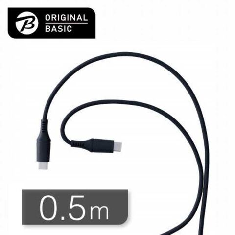 ORIGINALBASIC PD対応 Type-C to Type-Cケーブル 0.5m シリコーン素材 やわらかい 抗菌仕様 SIAA認証 ブラック OB-UCS2CC050-K