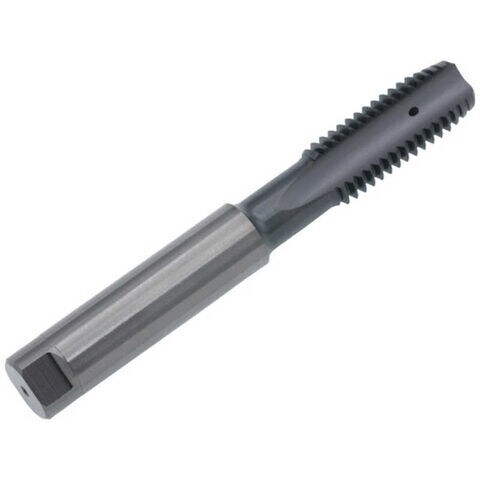 ●超高速加工が可能な超硬タップで、内部給油やミスト方式、低温冷却ドライ加工方式に対応したサイドスルーホール形状を採用しており、アルミ鋳物やアルミダイカストなどの通り穴に適しています。