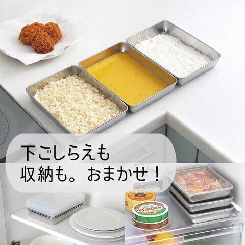 揚げ物の下ごしらえに使いやすい3個セット。余っても蓋をしてそのまま保存できます