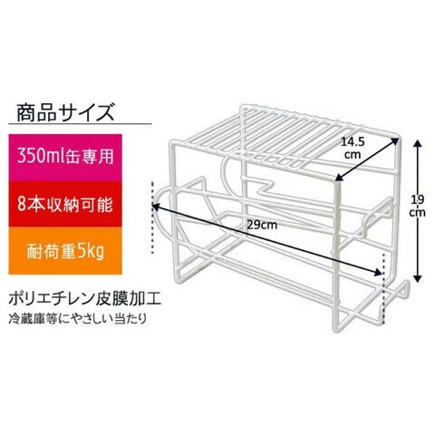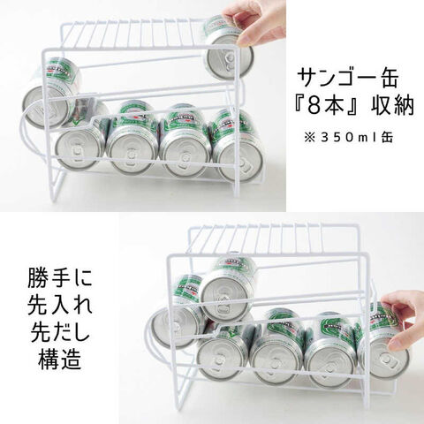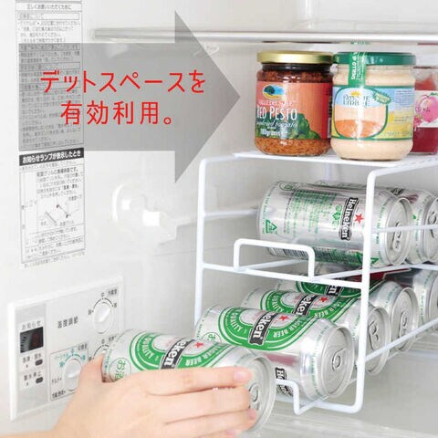 先に入れておいた冷たい缶から取り出せる350ml缶専用の缶ストッカーです。最大8缶まで収納可能で、冷蔵庫内がスッキリ片付けられます。