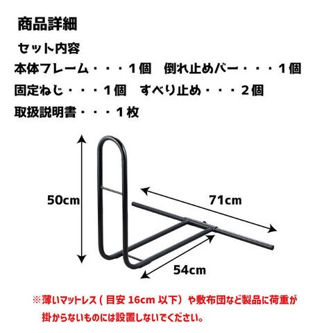 仕様2:注意事項:薄いマットレス(目安16cm以下)や敷き布団など製品に荷重が掛からないものには設置しないでください。