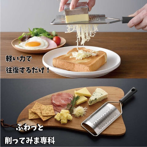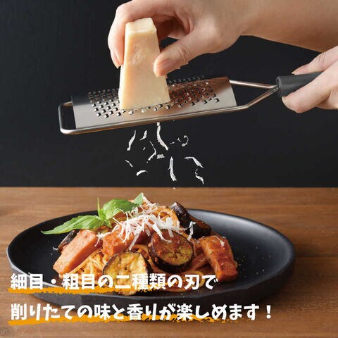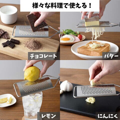 ハードチーズ、レモンや柑橘類の皮、繊維のある生姜や、にんにく、チョコレートなど色々な料理に使えます。