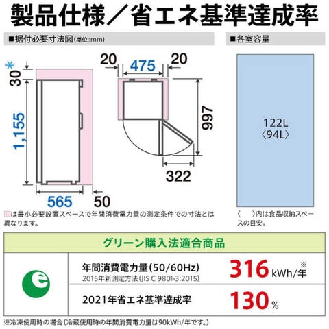 冷凍室容量:122L
