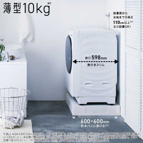 ・60cm角防水パンに置ける薄型10kg「まっ直ぐドラム」・泡のシャワーで洗剤を繊維の奥まで浸透「泡フルウォッシュ」・黄ばみを落とし除菌もできる「お湯洗いモード」・クラスNo.1スピード洗濯「標準コース約29分」