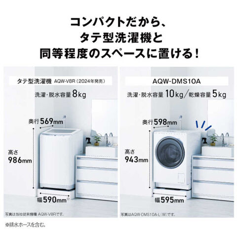 アクア AQUA ドラム式洗濯乾燥機 (右開き) 洗濯10.0kg 乾燥5.0kg ヒートポンプ乾燥 ホワイト AQW-DMS10A-R-W(標準設置無料)