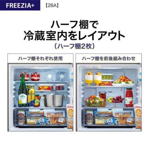 ・シンプル&スタイリッシュデザイン・大容量の2ドアまん中大容量フリーザー・INV採用で省エネモデル