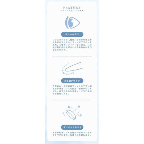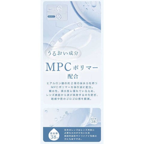 親水性、保水性に優れているため、レンズ表面から涙が蒸発するのを防ぎ、乾燥や目のゴロゴロ感を軽減。