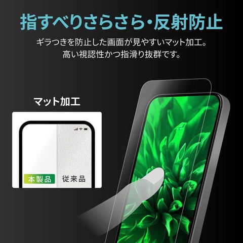 超硬度10H表面強化ガラス/ケースに相性抜群の全画面保護サイズ/指紋防止効果2倍持続/ギラつきを軽減し画面が見やすい反射防止・マット加工/ホコリ除去ラベル・クリーニングクロス付属