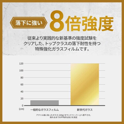 落下耐性8倍の新世代ガラス採用/ケースに相性抜群の全画面保護サイズ/指紋防止効果2倍持続/左右からの覗き見を防止/ホコリ除去ラベル・クリーニングクロス付属