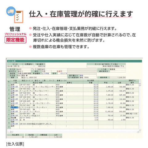 仕様2:[ストレージ 必須空き容量] 弥生販売:350MB以上(*)(*)データベースをインストールする場合、別途空き容量が必要です。 ※データ領域は別途必要です。 ※インストール時や製品動作時にはシステムドライブに一時ファイル領域が必要です。[動作に必要なソフトウェア] 本製品の動作には、Microsoft .NET Framework 4.8、VC++2019ランタイムが必要です。