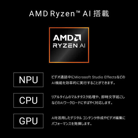 NPU(AIプロセッサ):AMD Ryzen AI(最大50TOPS)