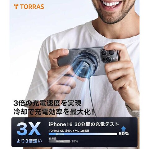 TORRASトラス Torras - Ostand PolarCircle Qi2 冷却機能 MagSafe対応充電器 Black X00WX3004