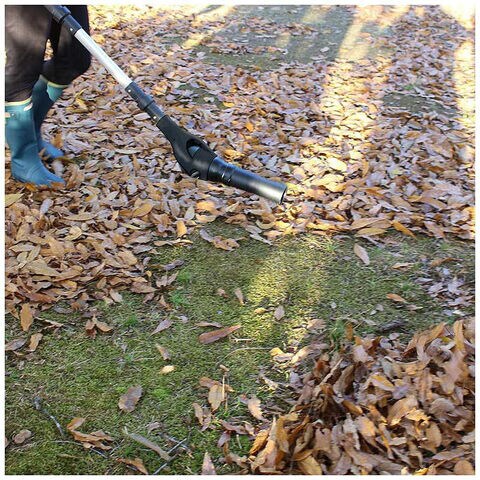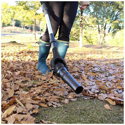 先端の角度を調整して地面と平行に風を送るので、効率的にお庭の落ち葉掃除などをができます。地面と平行な風なので、余計な砂埃も巻き上げません。