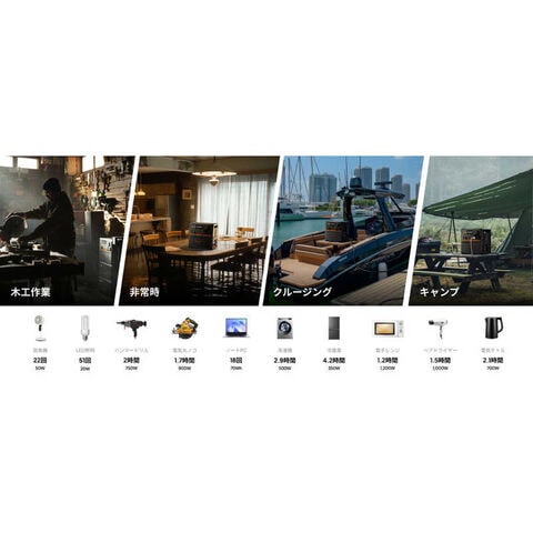 [出力ポート]100VAC×3、USB-C×2、USB-A×2、シガーソケット×1、RVポート×1