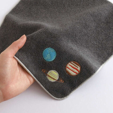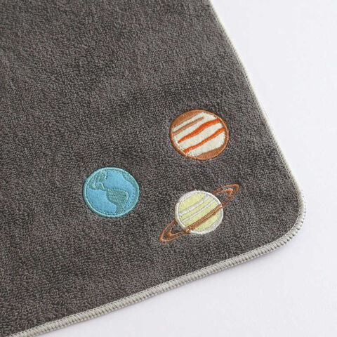 両面パイルになって給水力UP! アップリケ刺繍をあしらったアカデミックなタオルハンカチです。