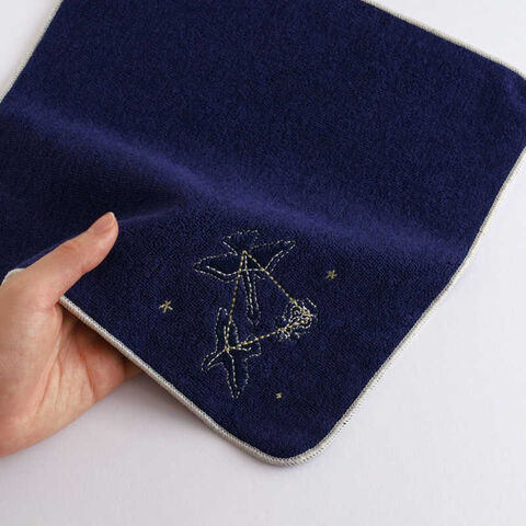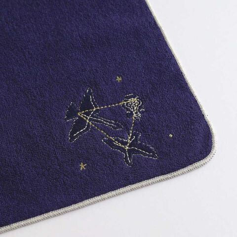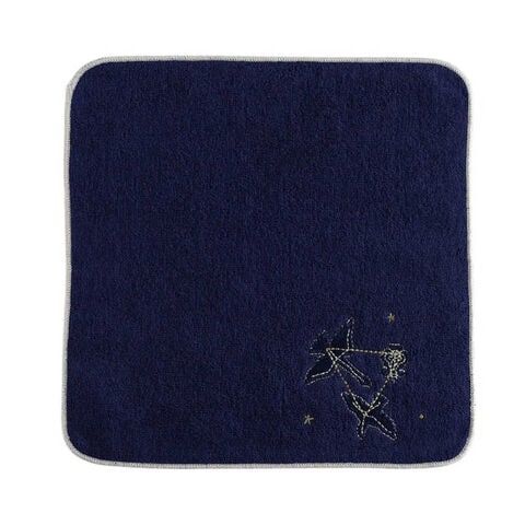 両面パイルになって給水力UP! アップリケ刺繍をあしらったアカデミックなタオルハンカチです。
