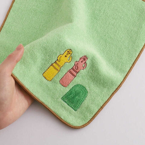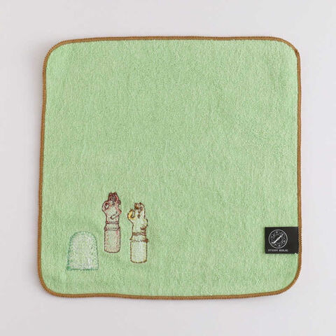両面パイルになって給水力UP! アップリケ刺繍をあしらったアカデミックなタオルハンカチです。