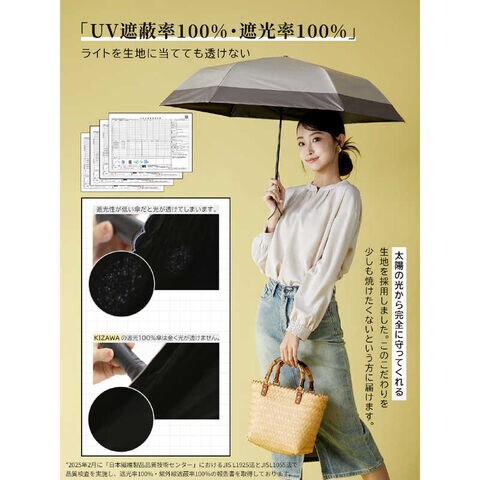 また、生地の網目が細かいのでUV加工のコーディングものりやすく、薄めで軽量でありながらUVカット率は100%、UPF50+、完全遮光という高機能な生地を用いています。